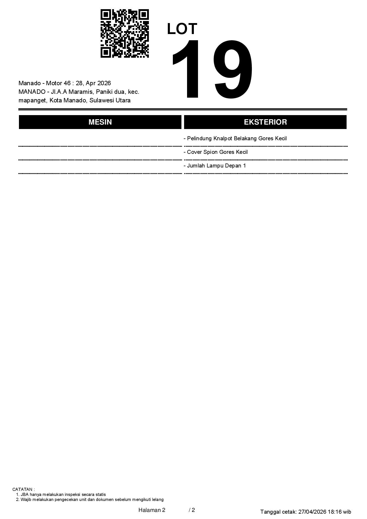 Tanggal Lelang: 28/04/2026 11:00 | WITA