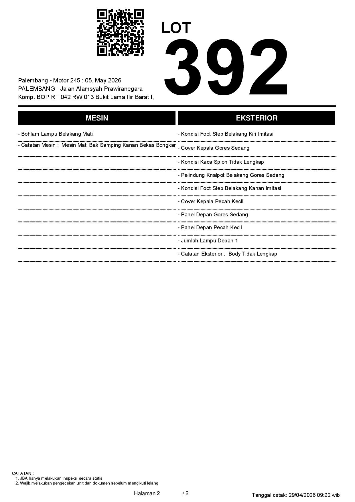 1. Peserta lelang wajib cek unit & dokumen