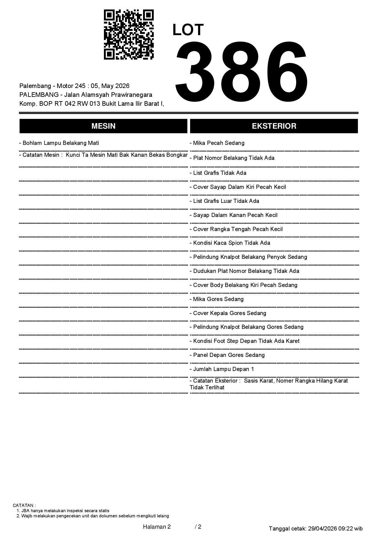 1. Peserta lelang wajib cek unit & dokumen