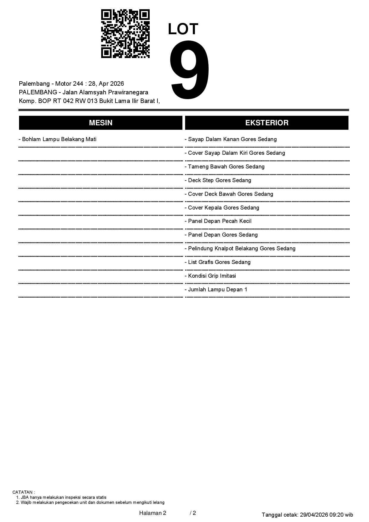 1. Peserta lelang wajib cek unit & dokumen