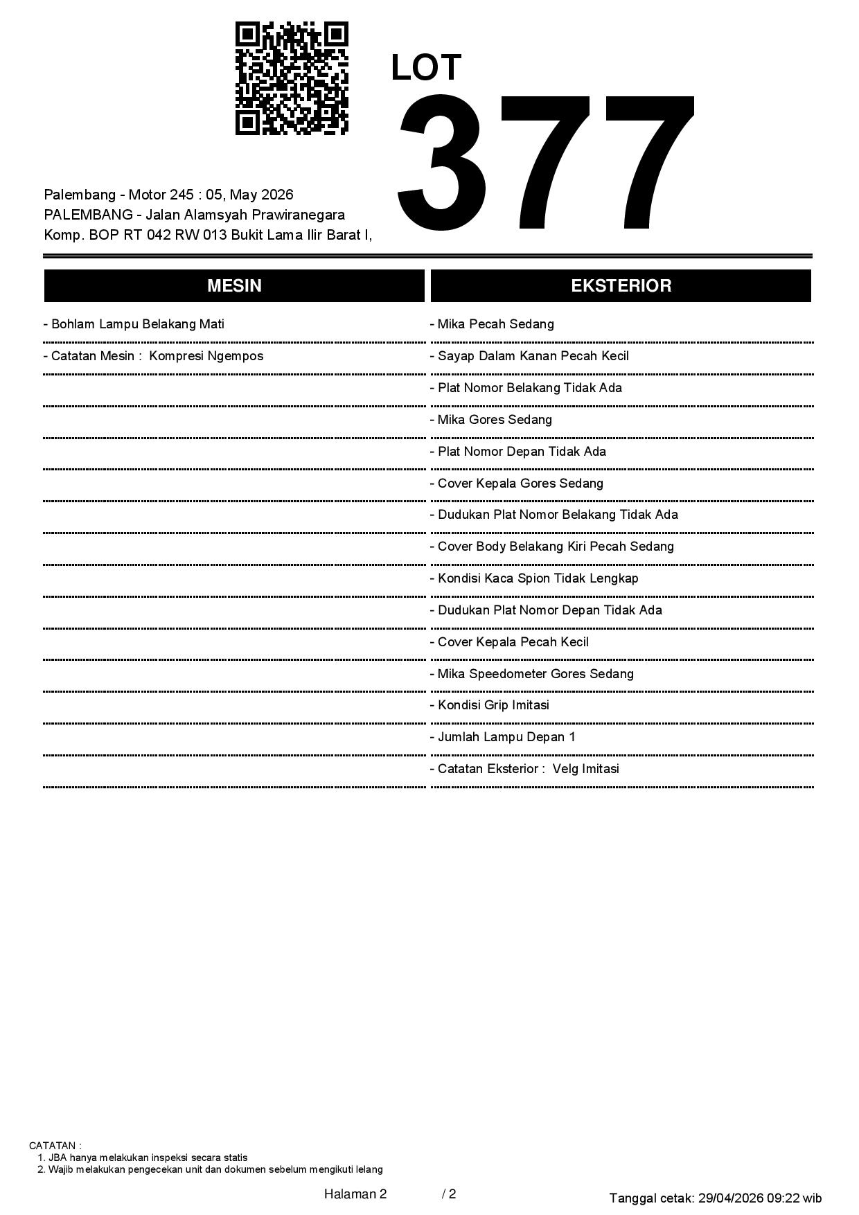 1. Peserta lelang wajib cek unit & dokumen