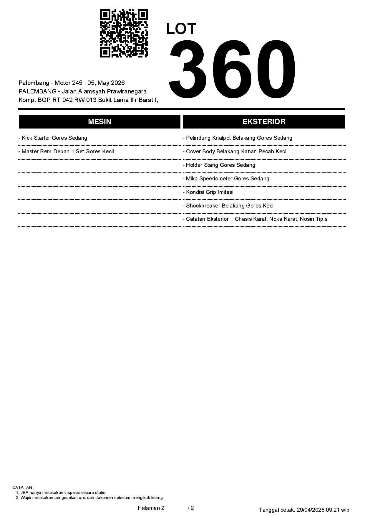 1. Peserta lelang wajib cek unit & dokumen