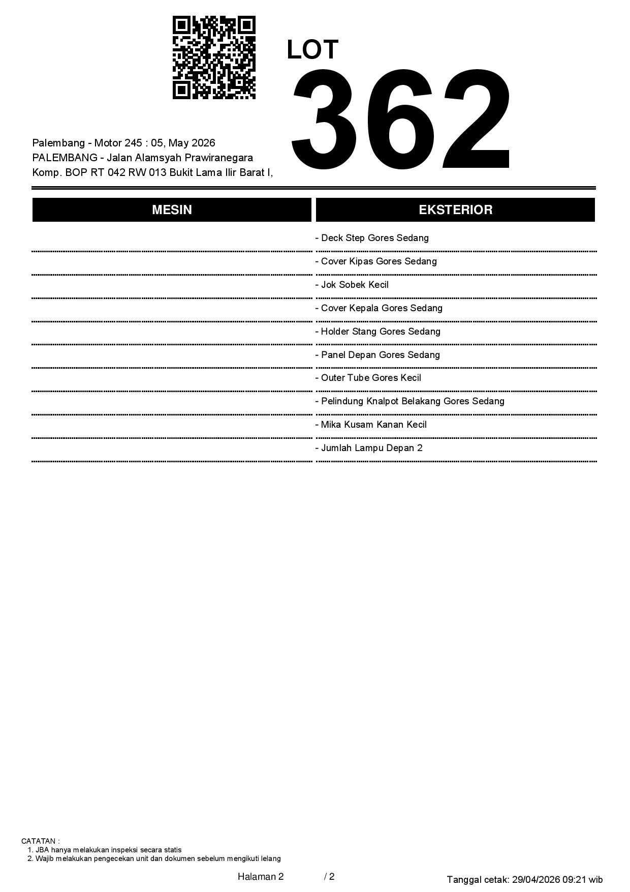 1. Peserta lelang wajib cek unit & dokumen