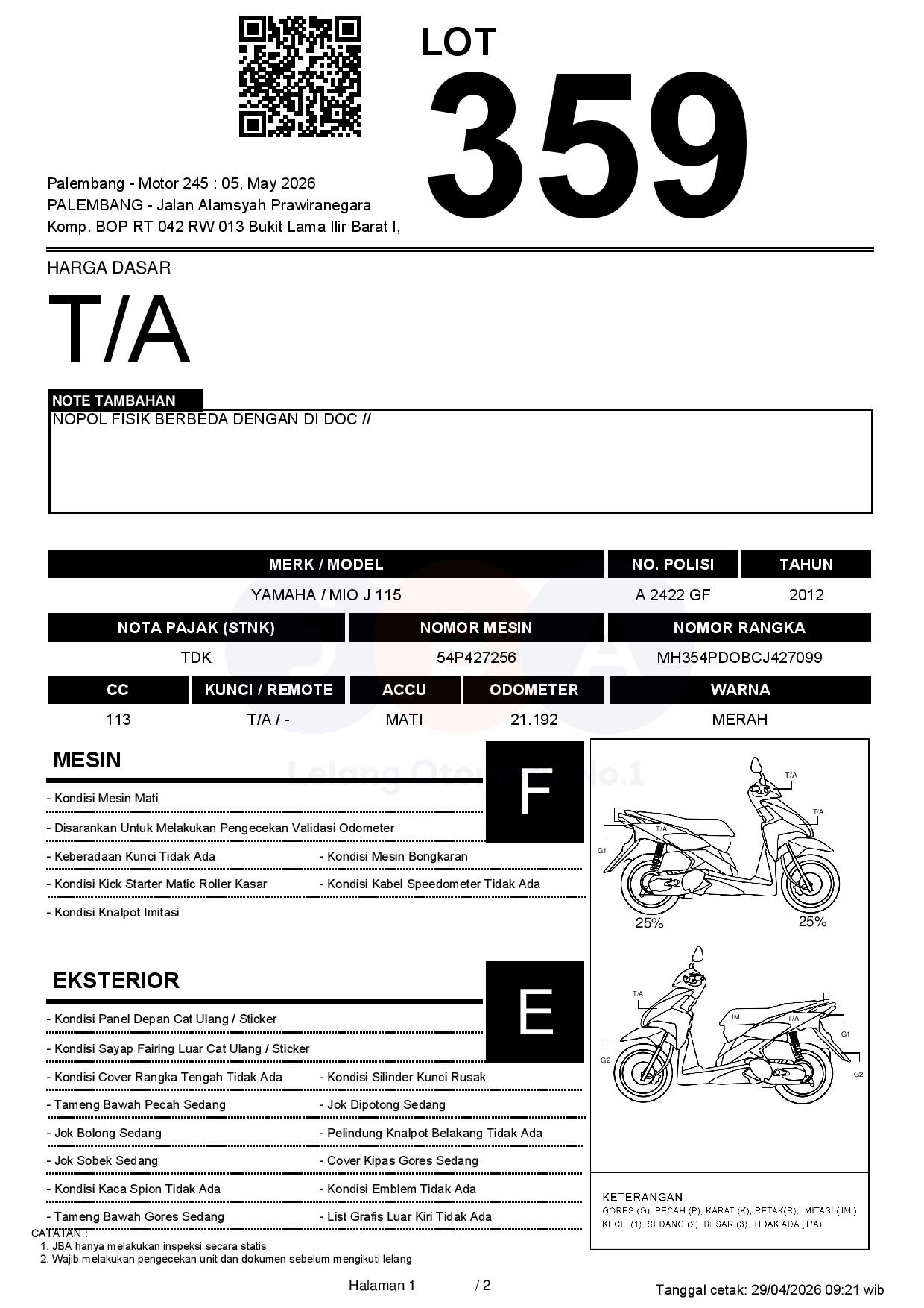 1. Peserta lelang wajib cek unit & dokumen