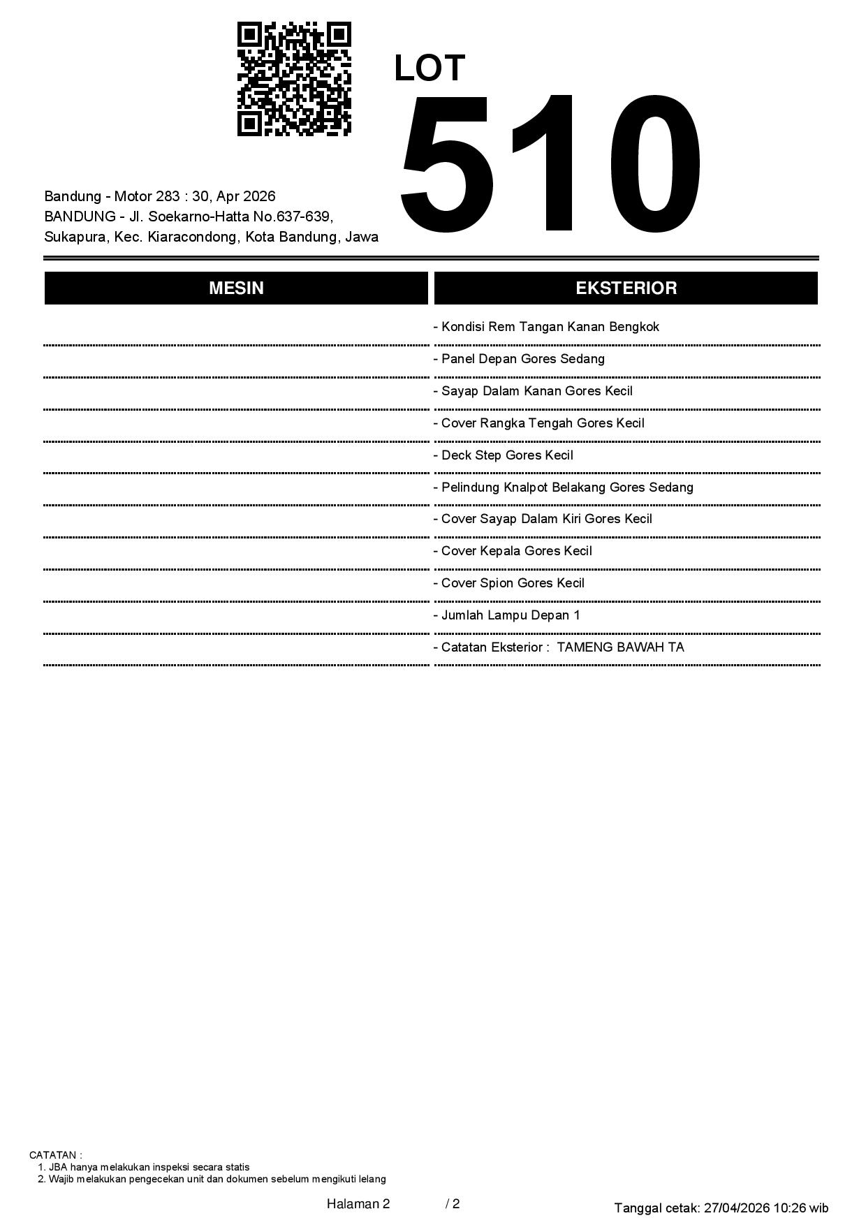 2. Peserta lelang wajib cek unit & dokumen