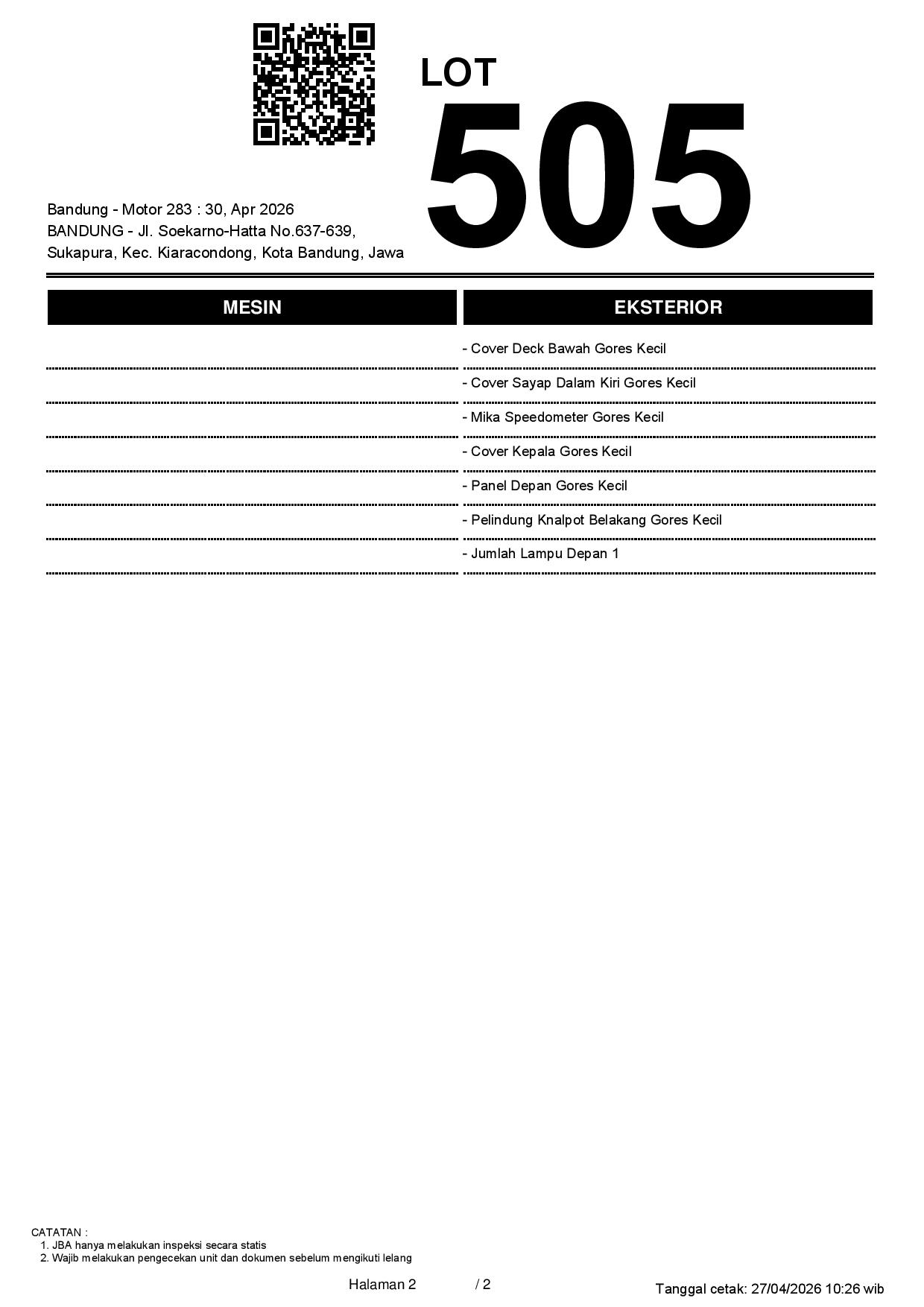 2. Peserta lelang wajib cek unit & dokumen