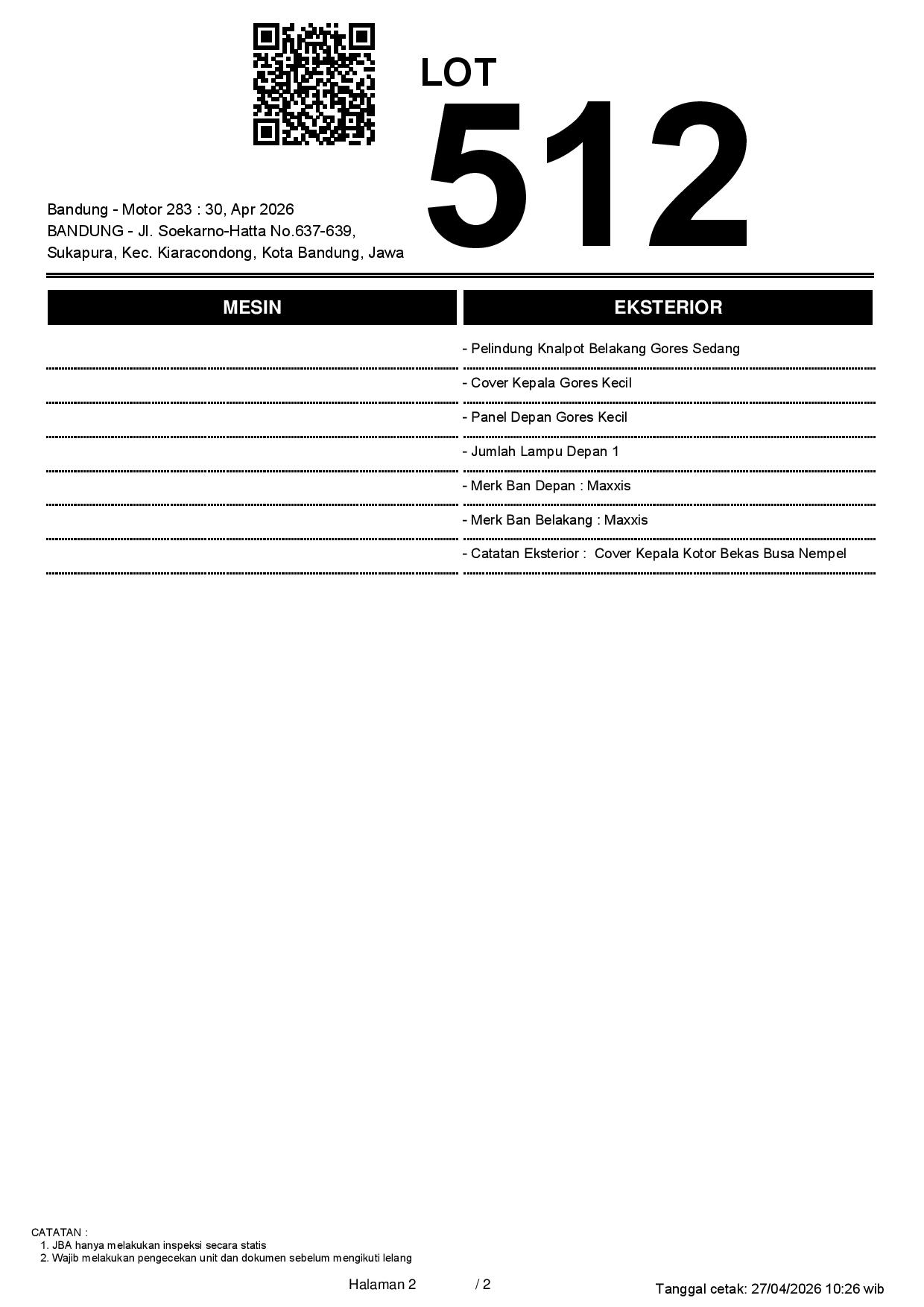 2. Peserta lelang wajib cek unit & dokumen