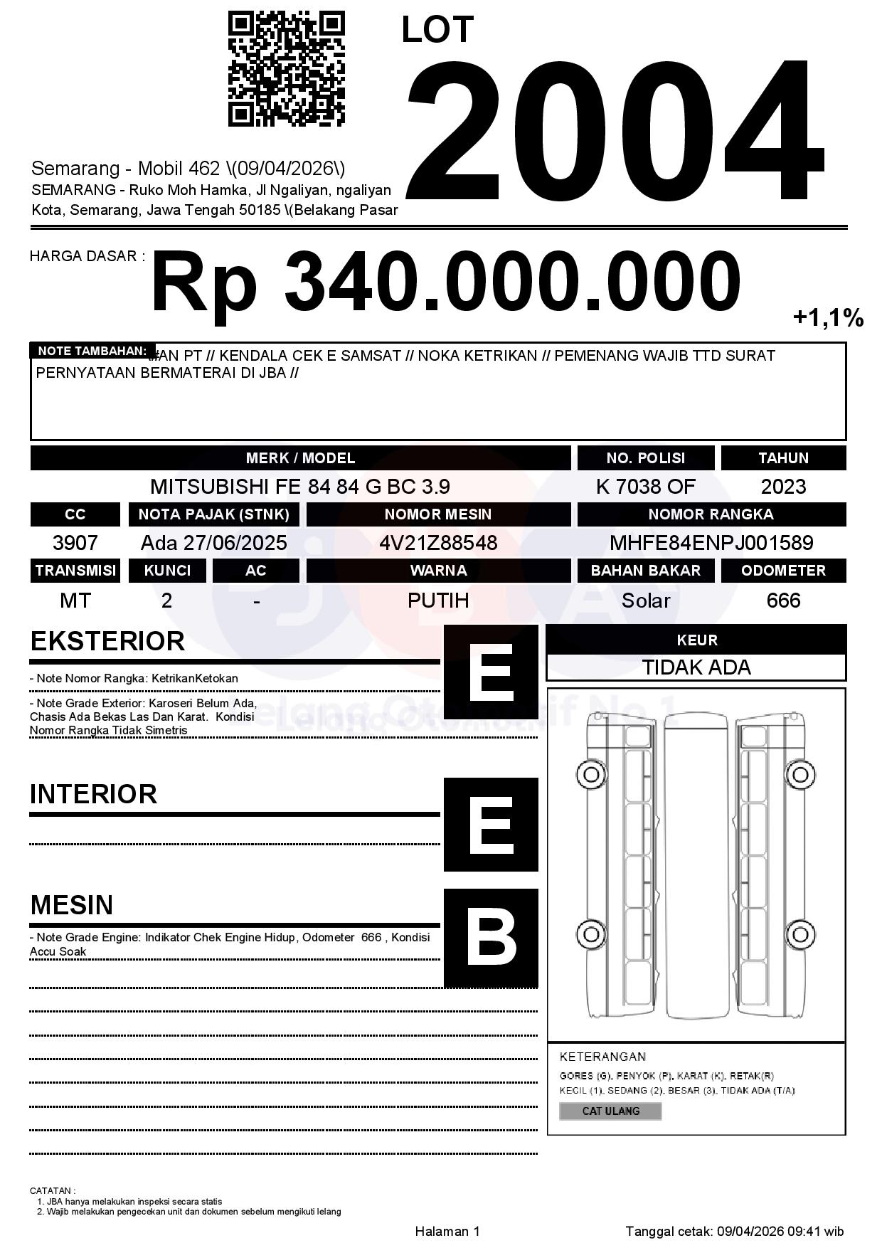 | Note | #AN PT // KENDALA CEK E SAMSAT // NOKA KETRIKAN // PEMENANG WAJIB TTD SURAT PERNYATAAN BERMATERAI DI JBA // |