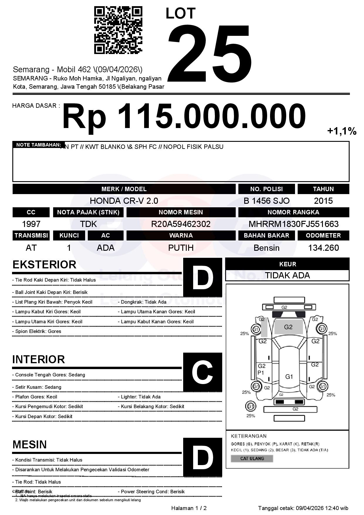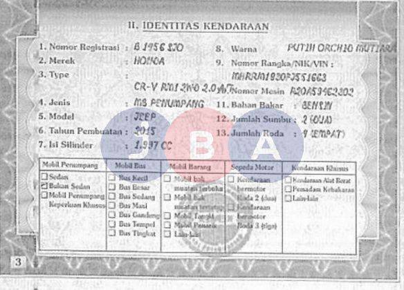 | Note | AN PT // KWT BLANKO & SPH FC // NOPOL FISIK PALSU |
