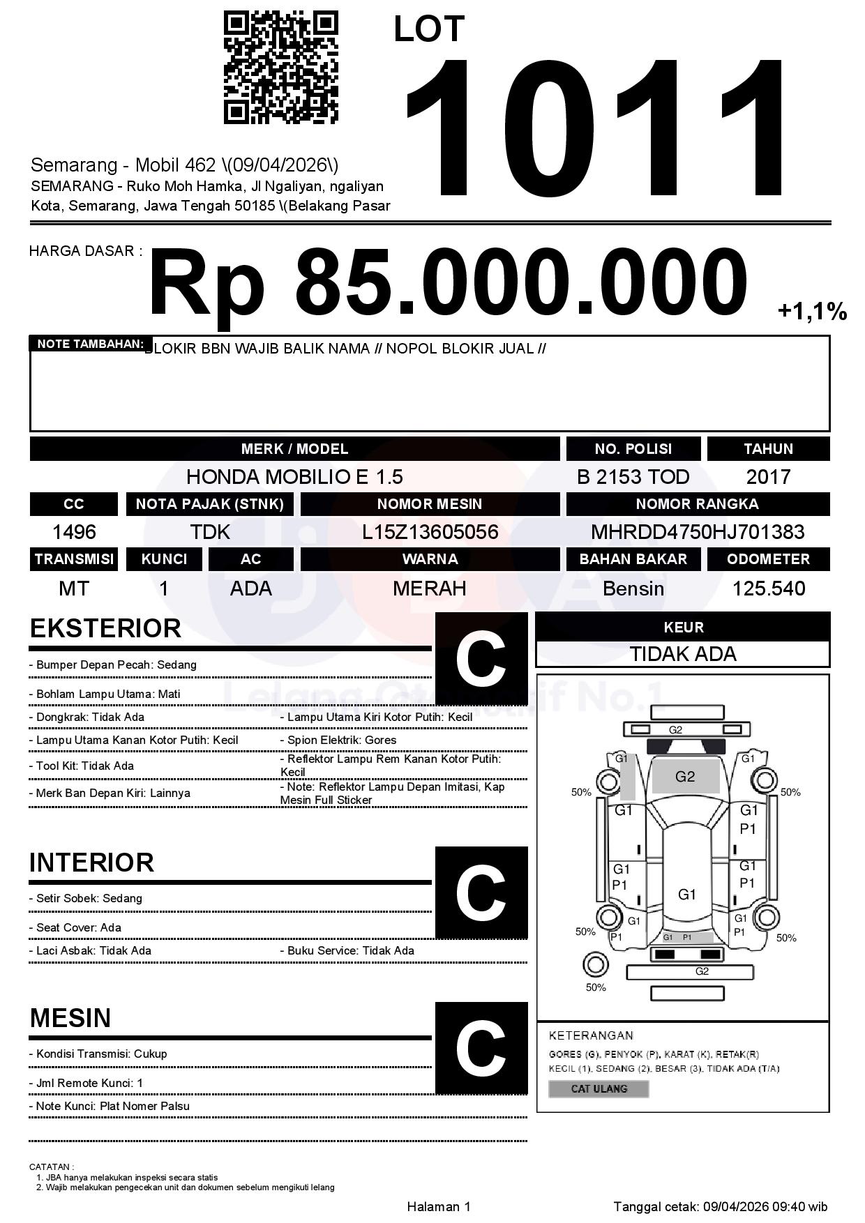 | Note | BLOKIR BBN WAJIB BALIK NAMA // NOPOL BLOKIR JUAL // |